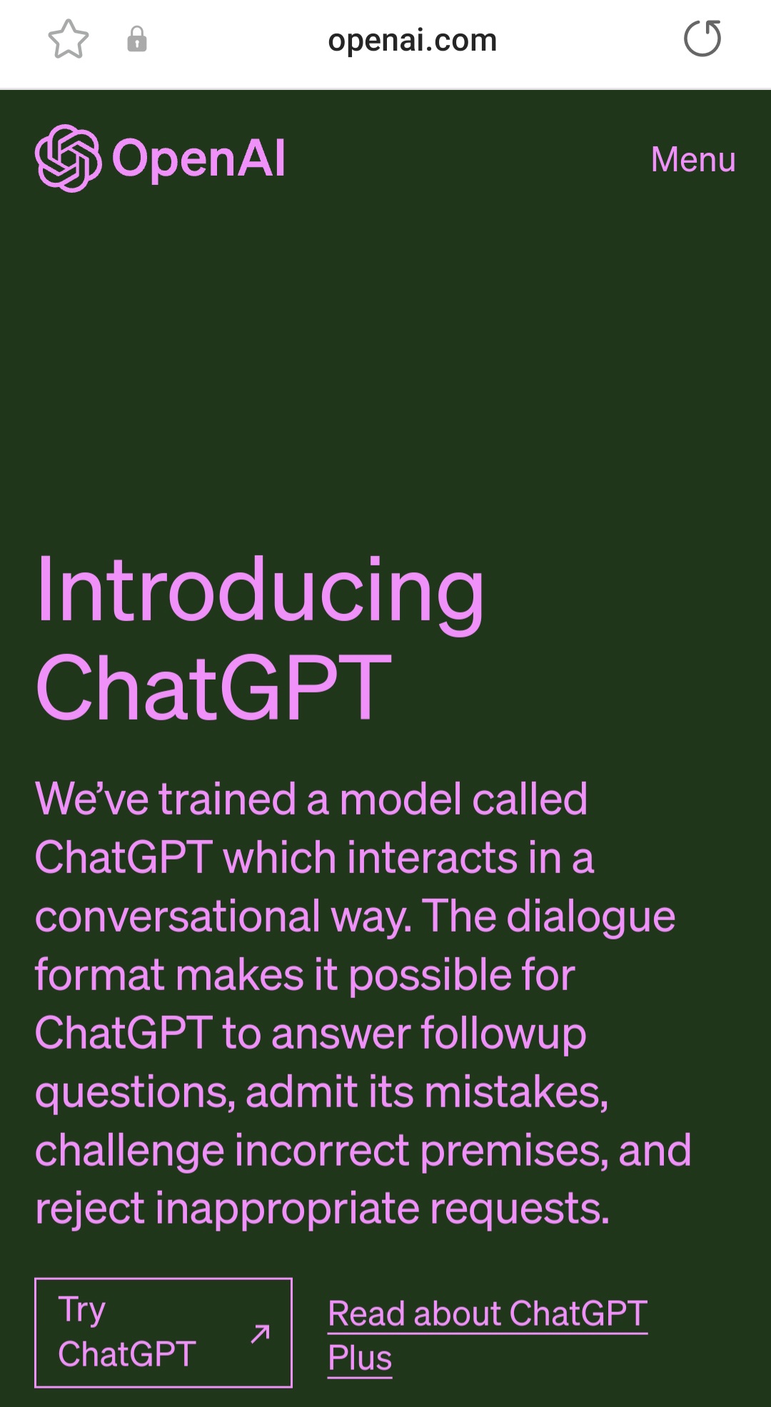 아래 화면의 제일 하단 왼쪽에 있는 'TRY chatGPT' 버튼을 클릭한다.