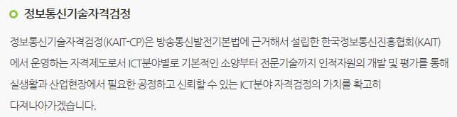 해당 시험은 '한국정보통신진흥협회'에서 운영하는 민간 자격제도이다.