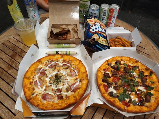 - 카진호 피자는 오키나와의 특산물인 고야를 넣은 피자가 특색입니다. 고야는 쓴맛이 나는 야채로 건강에 좋습니다.