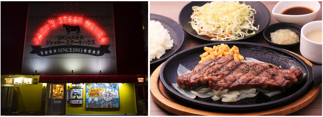 - 잭스 스테이크는 오키나와에서 가장 유명한 스테이크 집입니다. 쥬시하고 부드러운 스테이크를 저렴한 가격에 즐길 수 있습니다.